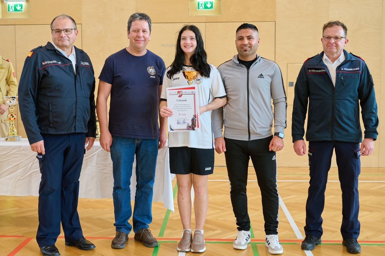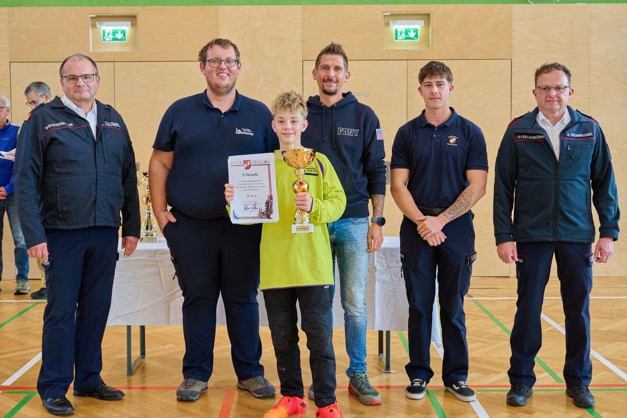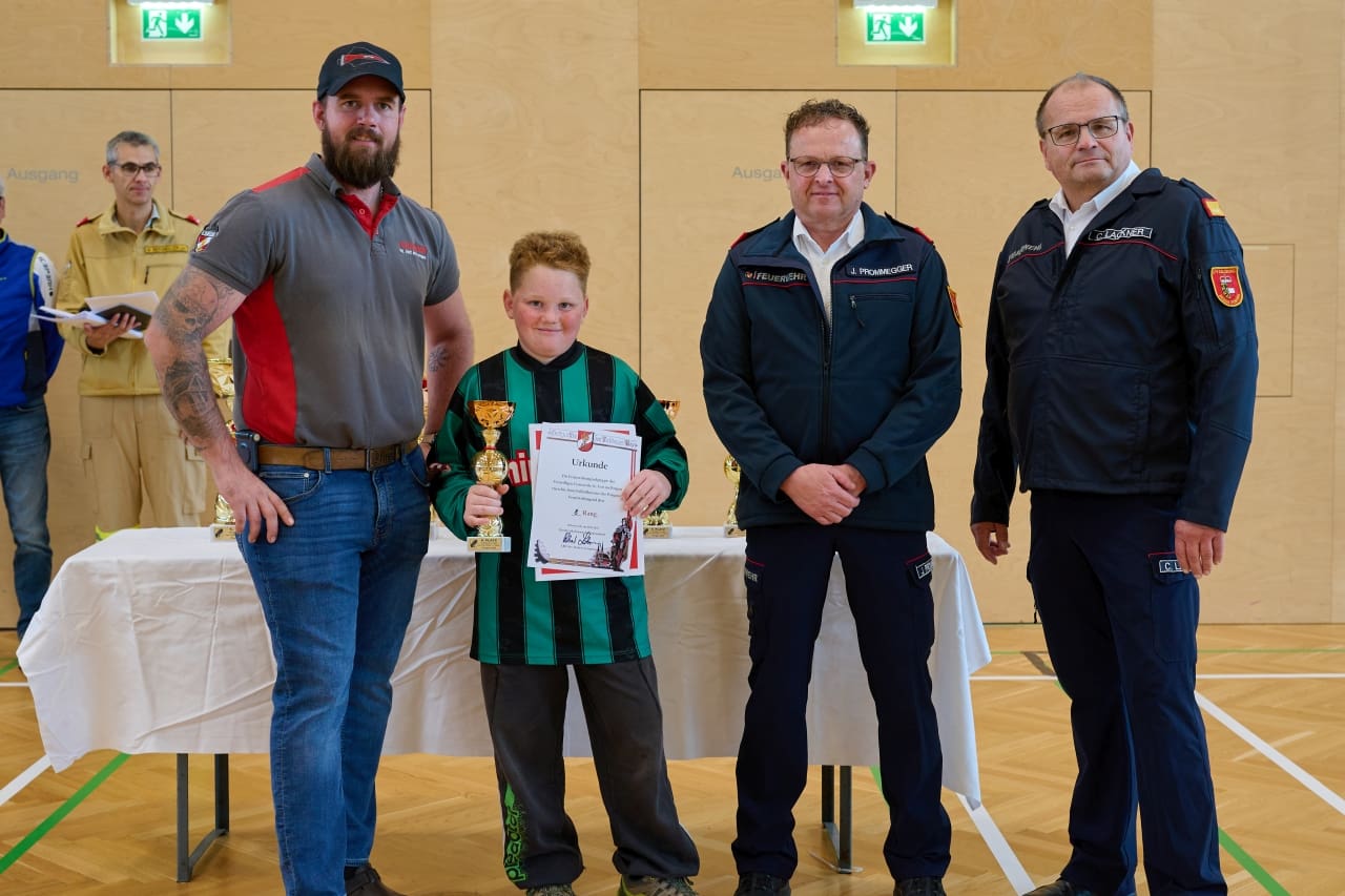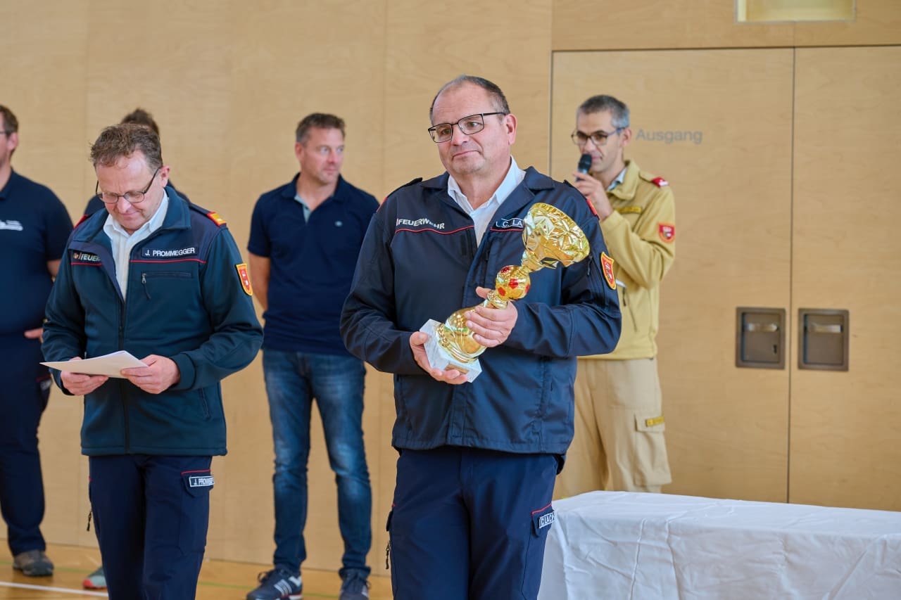 Die Preise bei der anschließenden Siegerehrung wurden von Bezirksfeuerwehrkommandant LBDSTV Robert Lottermoser und den Abschnittsfeuerwehrkommandanten BR Christian Lackner, BR Josef Prommegger und BR Matthias Egger übergeben.