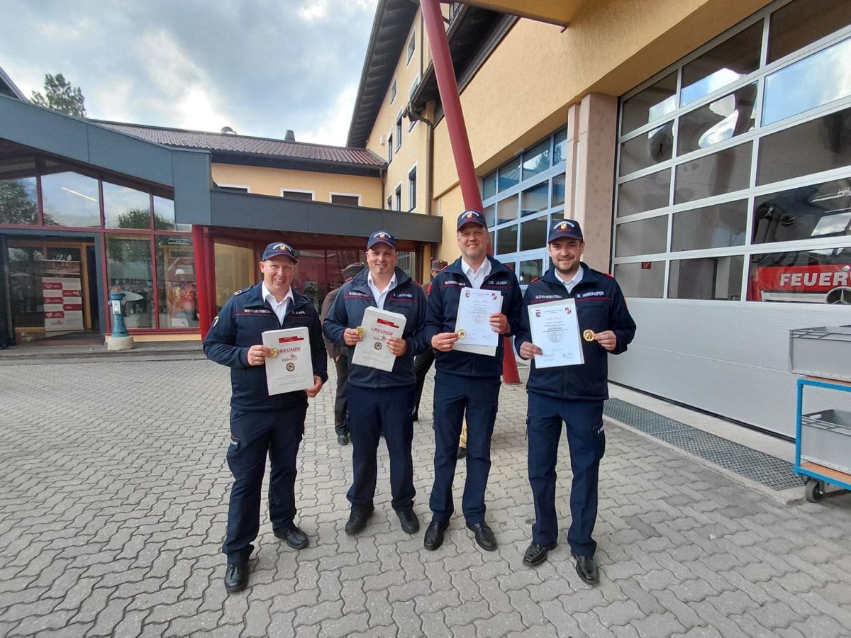 Am Samstag, den 18. April, nahmen unsere Feuerwehrkameraden Christian Jäger, Bernhard Kaml, Gerald Lackner und Bernhard Windhofer am Feuerwehrleistungsabzeichen in Gold – auch bekannt als „Feuerwehrmatura“ – an der Landesfeuerwehrschule Salzburg teil. Dieses Abzeichen stellt die höchste Auszeichnung dar, die aktive Feuerwehrmitglieder im Feuerwehrwesen erreichen können.
