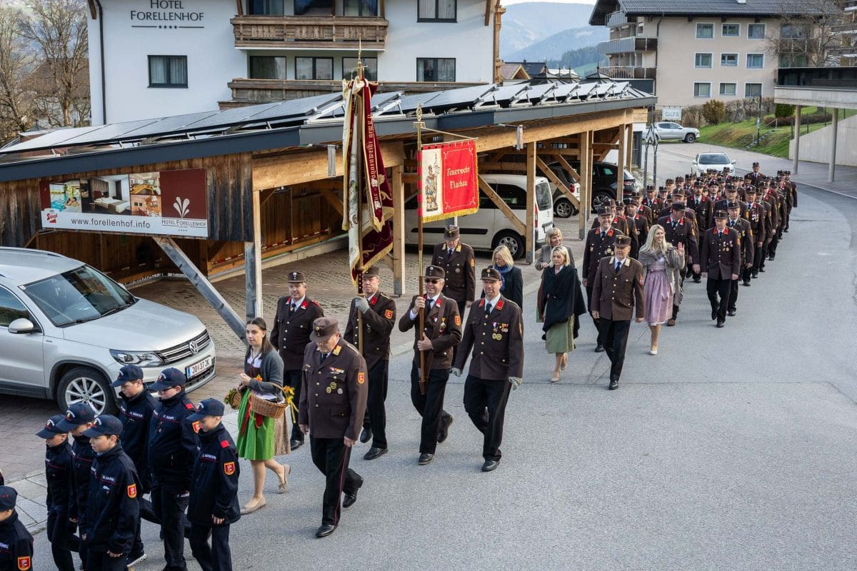 Am Sonntag, den 19. April 2026, fand die diesjährige Florianifeier der Feuerwehr Flachau-Reitdorf mit anschließender Jahreshauptversammlung und Neuwahl des Ortsfeuerwehrkommandanten statt. Die Kameradinnen und Kameraden trafen sich am Dorfplatz in Flachau und marschierten gemeinsam mit der eigenen FF-Musik zur Kirche. Die feierliche Gestaltung der Messe übernahm unser geschätzter Pater Paul.