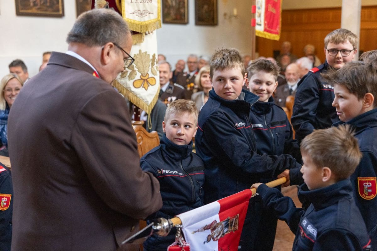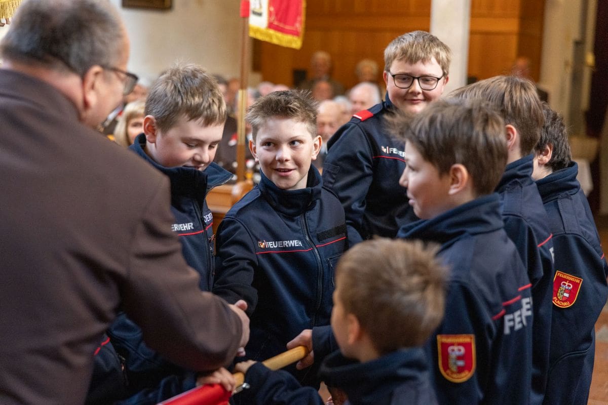 Als erster Festakt in der Kirche wurden die neu eingetretenen Feuerwehrjugendmitglieder angelobt. Diese sind:
